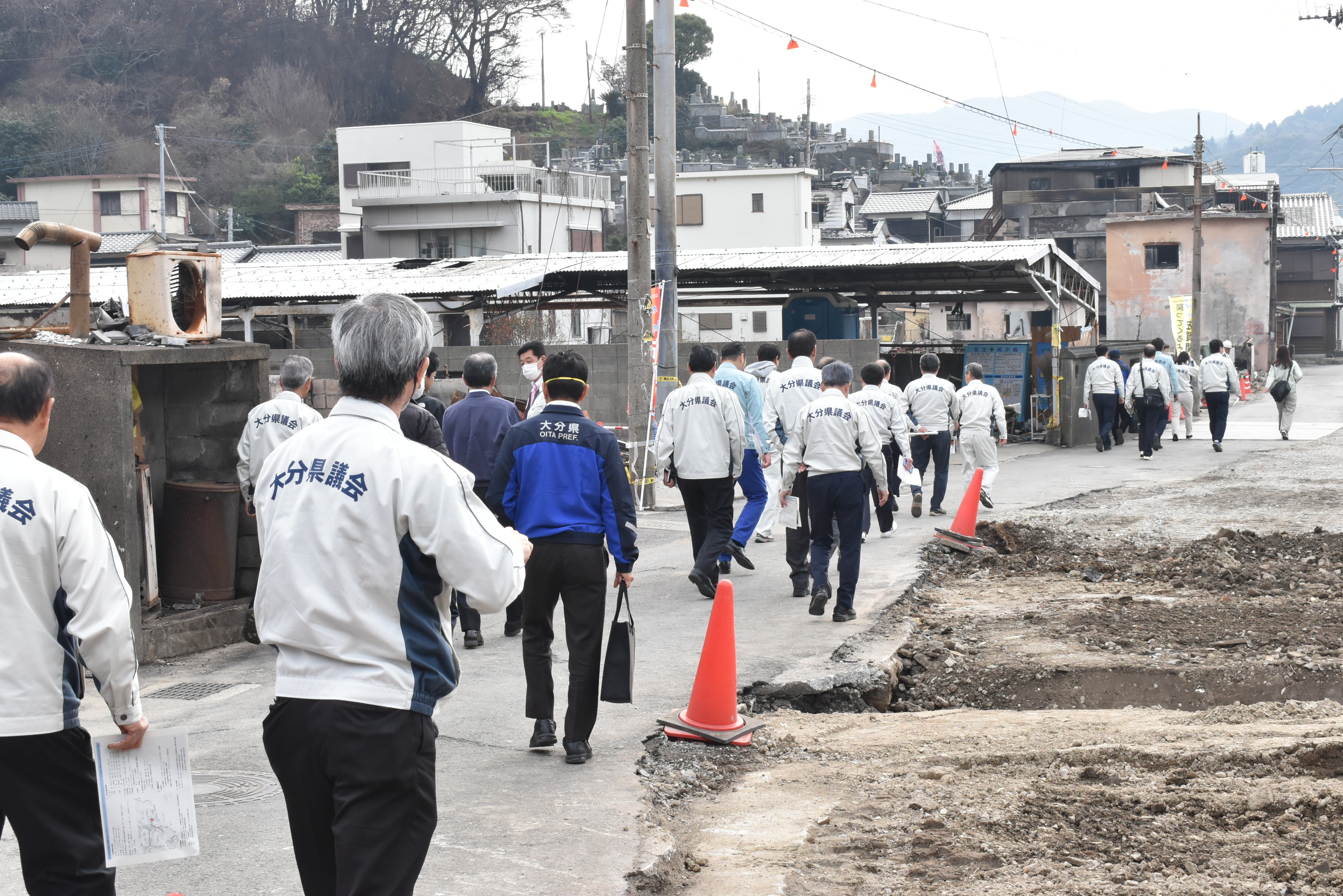 令和8年3月24日大分県議会防災減災・県土強靱化対策特別委員会による田中地区視察が行われました現地視察と、議員団・田中連合区の代表者、大分県漁協佐賀関支店との発災時の様子や今後の動きについて御説明させていただきました